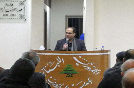 من اجواء اللقاء السياسي مع رئيس مركز باحث للدراسات الدكتور يوسف نصرالله الذي اقامه حزب الله في بلدة البازورية برعاية البلدية