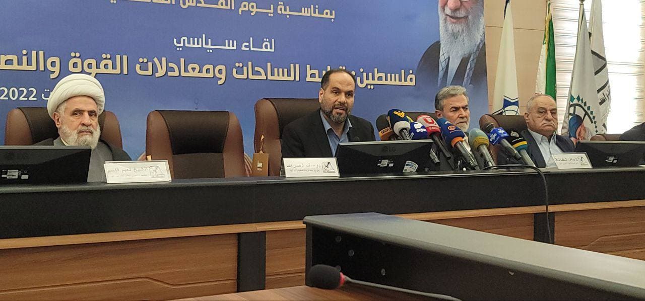 لمناسبة يوم القدس العالمي نظم مركز باحث للدراسات الاستراتيجية ولجان العمل في المخيمات والمستشارية الثقافية الايرانية في بيروت لقاءً سياسياً بعنوان: "فلسطين: ترابط الساحات ومعادلات القوة والنصر" في مركز الامام الخميني للجالية الايرانية - بيروت