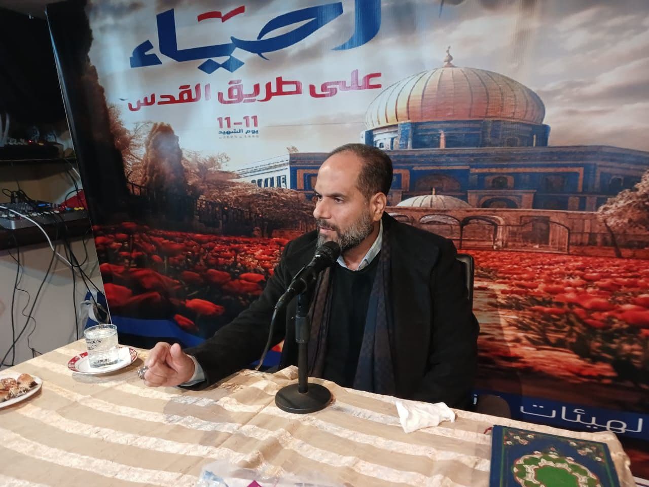 من اجواء السهرة السياسية مع رئيس مركز باحث للدراسات الفلسطينية والاستراتيجية البروفيسور يوسف نصرالله حول اخر التطورات والمستجدات لعملية طوفان الاقصى في قاعة الحوراء - الغازية