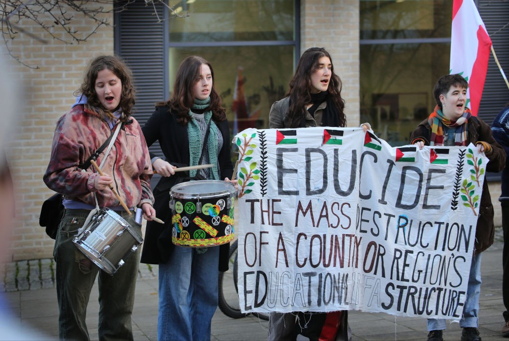 مُتَظاهِرون أمام كليّة الأدب في جامعة كامبريدج